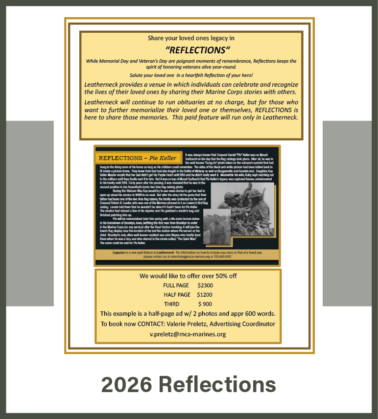 The Marine Corps Association publishes two monthly magazines – the Marine Corps Gazette, the professional journal of the Marine Corps, and Leatherneck, Magazine of the Marines. Both publications are available digitally to all of our members, and members can also receive their choice of print magazine.