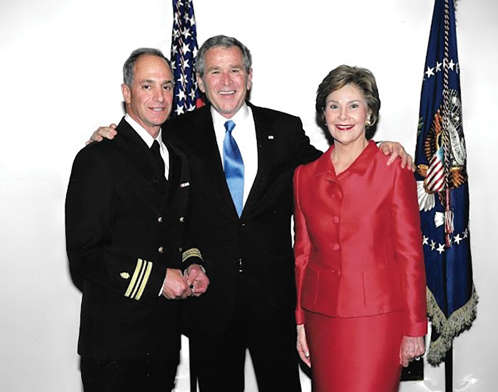 At the end of an emotional meeting the President asked if there was anything he could for any of us. I was last to speak, “Mr President, I am an orthopedic surgeon and I want to join the Navy Medical corps, but I was told I was too old. And no disrespect sir, but I am younger than you are.” President Bush looked directly at Christine and asked, “What does Mama think about that idea?” Luckily, she supported my desire to serve in the Navy Medical Corps. The President said, “No promises, but I’ll see what I can do.”