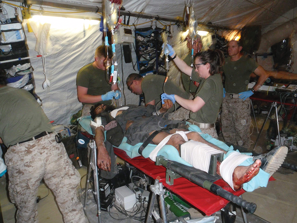 Military ER physicians and surgeons changed the standard of care for fluid replacement in combat trauma. Blood loss from traumatic battle injuries was now treated with blood products instead of sterile saline solution. Fresh whole blood transfusion was the preferred product. In some remote bases, a “walking blood bank” of volunteer base Marines and soldiers provided lifesaving transfusions. If whole blood was not readily available, component blood products would be utilized including packed red cells, platelets, and fresh frozen plasma. This was a revolutionary change in trauma care that has since been adopted across the civilian trauma sector, as well.