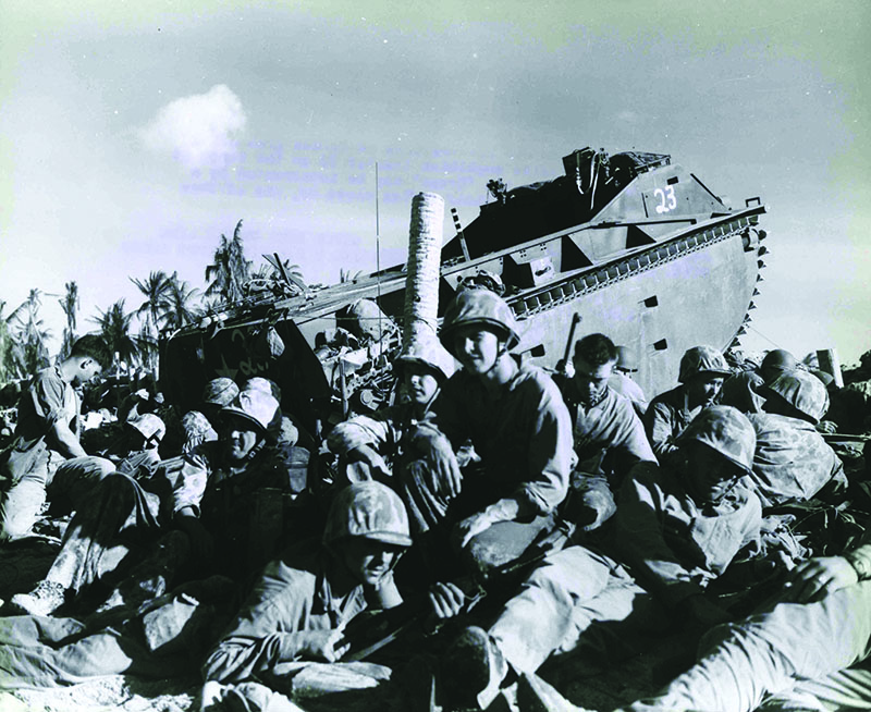 Tarawa was a proving ground. There were 125 LVTs—75 LVT-1s from the Guadalcanal campaign and 50 brand new LVT-2s. They performed admirably, though for a short period of time and at great danger. Due to the lack of tank landing ships (LSTs), each LVT at Tarawa had to be craned into the water and loaded with Marines while it bobbed like a cork. Most of the LVTs that reached shore were shot so full of holes that they could not return to the transport ships to take more Marines to shore. Many sank as soon as they tried to reverse off of the reef back into the water. But the LVTs and their crews proved their worth in combat to take combat Marines to shore.