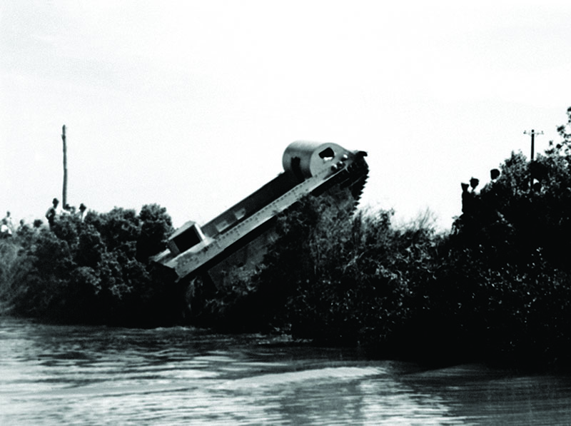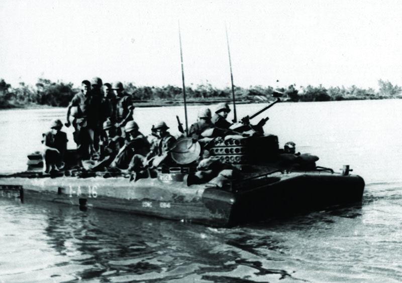 There were several issues with this family of vehicles. It used an 800-horse-power gasoline engine with fuel tanks that ran along the bottom of the vehicle. These were critically vulnerable to mines. An exploding mine would rupture the gas tanks, setting off an inferno inside the vehicle. Marines using these behemoths in Vietnam often chose to ride on top of the vehicles, setting sandbags around themselves for protection. It was also exceedingly heavy. Its rear-mounted engine sat low in the water, and when traveling it would sag and the intakes would get swamped. The solution was to add a superstructure at the back of the vehicle to keep the intakes well above the water line.
