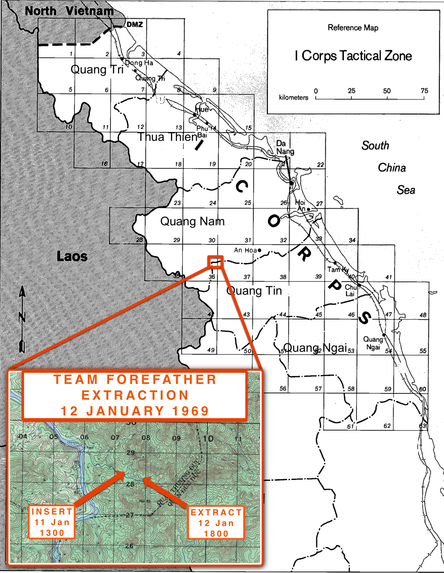 On Jan. 4, Thompson received a patrol warning order. His team, called Forefather, would insert 20 miles west of An Hoa to search for a suspected enemy supply station. Given the limited amount of time left on his tour, Thompson knew this would be his last patrol.