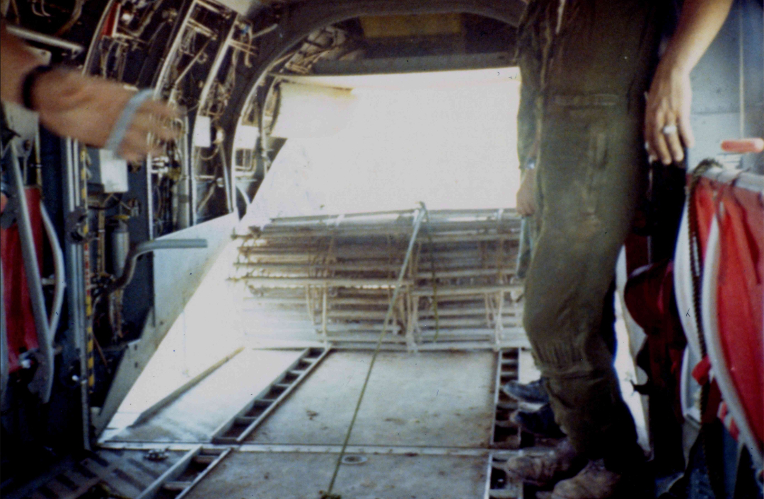 Lt Finlayson discussed the situation with Maj Simmons. They were running out of options for Forefather. Another try with the jungle penetrator would only produce the same results, or worse. “Sir, the ladder. We’ve got to give it a shot,” said Finlayson. Simmons agreed. It was their only other viable option. Finlayson sought out Buda as he watched others counting holes in the downed chopper. “Buda, get the Simmons Rig together. We’re trying it this time,” he said. Buda departed to prepare the rig, and Finlayson radioed for another chopper.